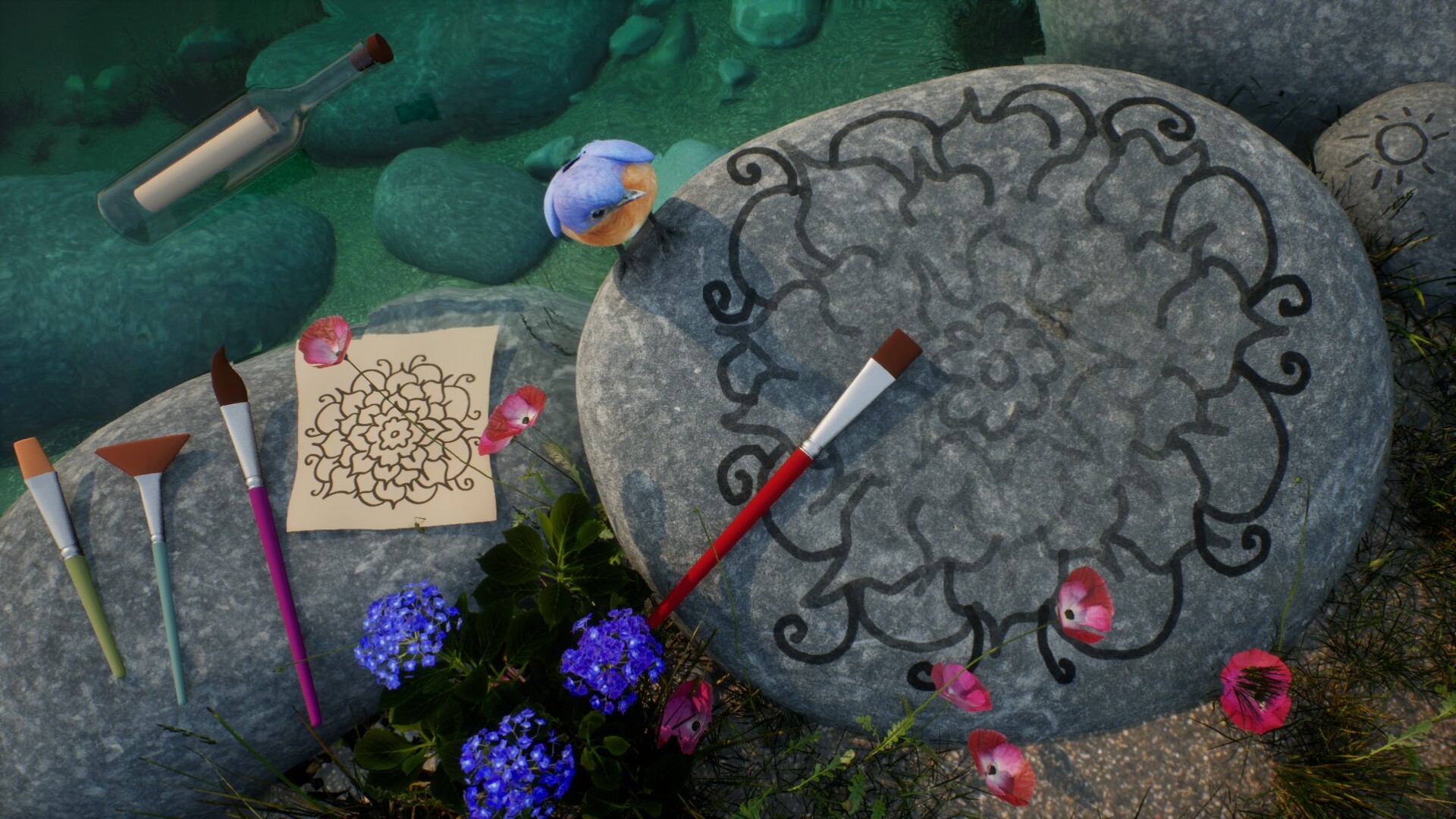 Meditation through explorative sketching and painting with gentle guiding voice overs that help you explore your own mindset. Getting to work with a very talented team on this project was a great experience! The game will launch on Steam in 2026, so keep an eye out!